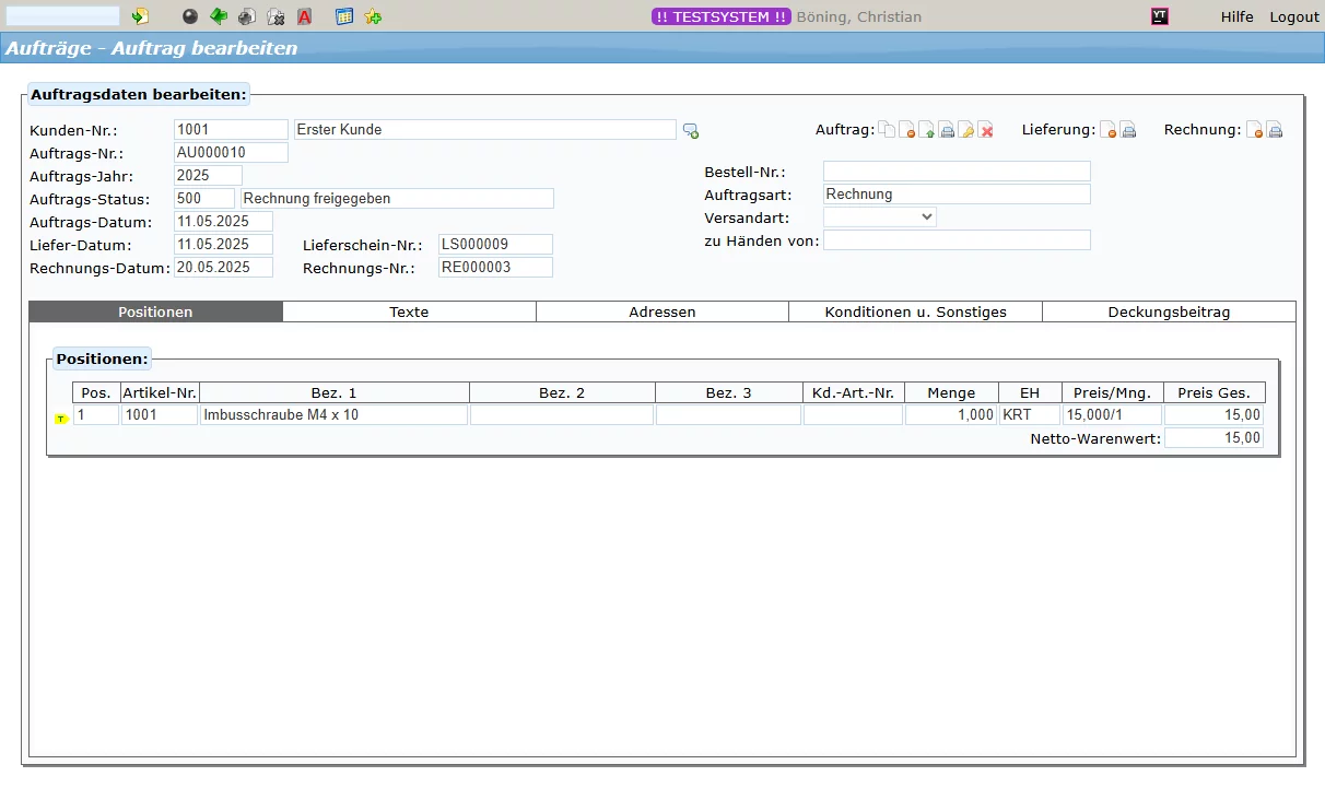 Bei der Auftragserfassung werden klassisch Kopfdaten und